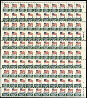 1338, Complete Sheet of 100 Stamps With Imperforate Margin ERROR - Stuart Katz