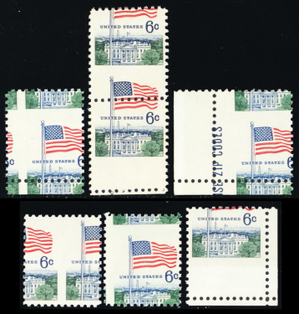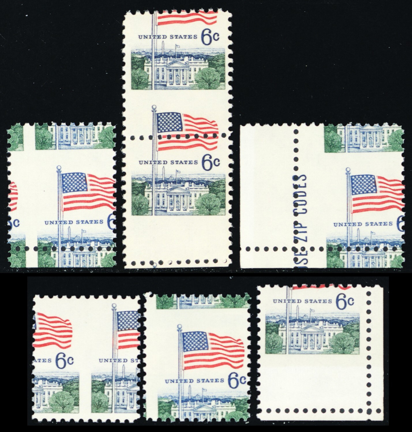 1338, Mint NH 6¢ Group of Six Misperf Shift Errors - Stuart Katz