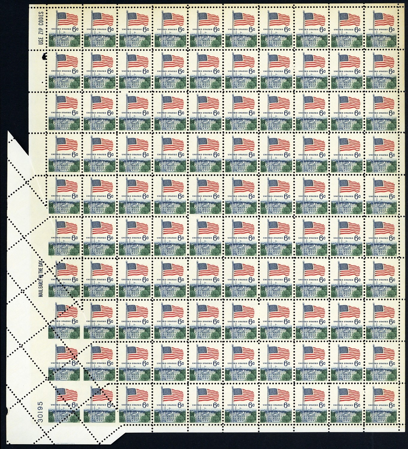 1338, MNH 6¢ LARGE Fold Over Crazy Perfs Error Sheet of 100 - Stuart Katz