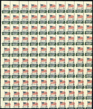 1338, MNH Pre Printing Folds & Misperfed Block of 100 Error Stamps - Stuart Katz