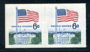 1338A, Imperf 6¢ Flag Coil Line Pair, Mint NH, Scott $350 for pair