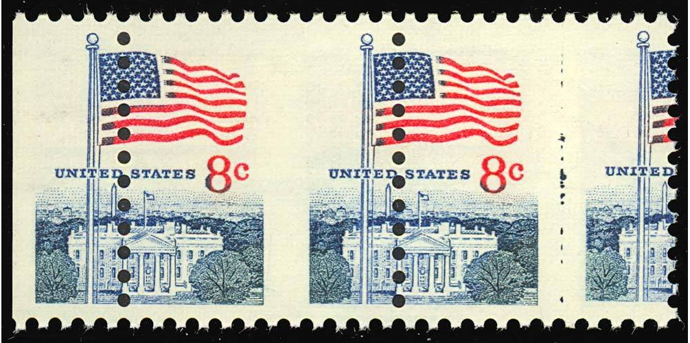 1338f Misperforated ERROR Strip Margin Pr - 8¢ White House & Flag - Stuart Katz