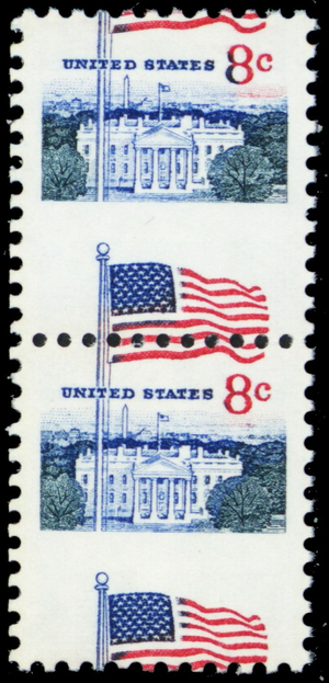1338f, Perf Shift Freak Error Pair Mint NH 8¢ White House * Stuart Katz