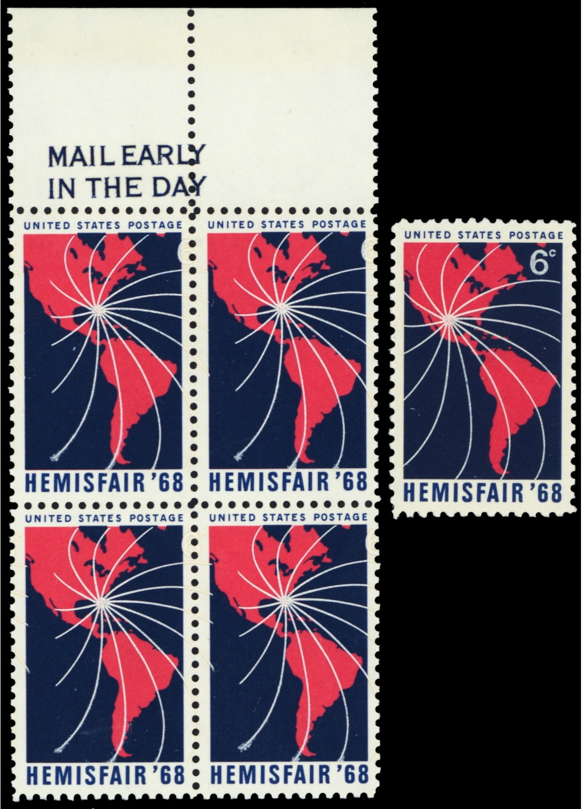 1340, Mint NH 6¢ White Color Shift Block Freak Error With Normal * Stuart Katz