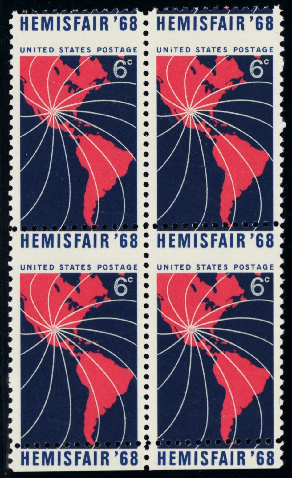 1340, MNH 6¢ Hemisfair RARE Misperfed Error Block of Four - Stuart Katz