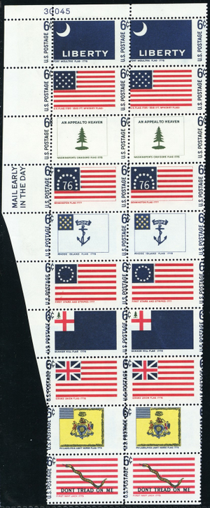 1354a, MNH 6¢ Misperfed Error Strip of 20 Flag Stamps - Stuart Katz