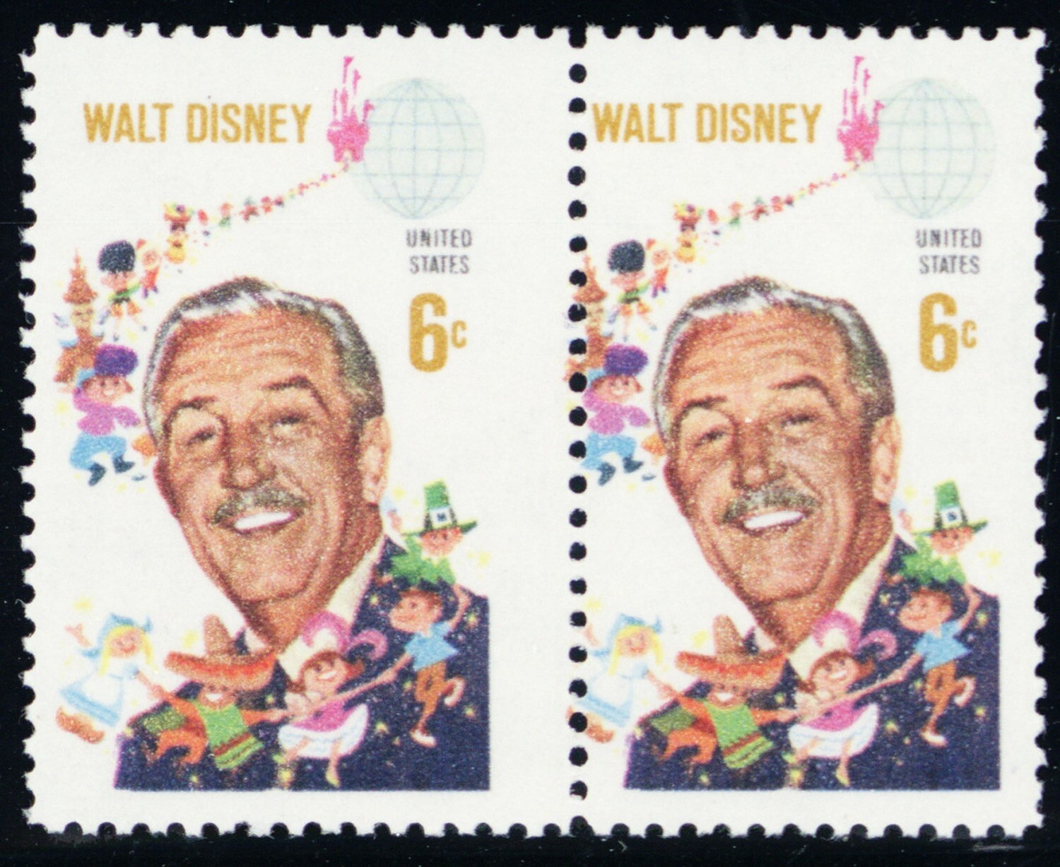 1355, Mint NH 6¢ Disney - Misplaced Perfs Misperfed Pair Error - Stuart Katz