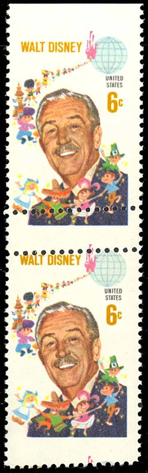 1355, Mint NH 6c Disney - MISPERFED FULL GUTTER BETWEEN ERROR PAIR - Stuart Katz