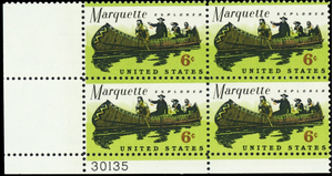 1356, MNH 6¢ RARE Green Color Shift Error Plate Block - Stuart Katz