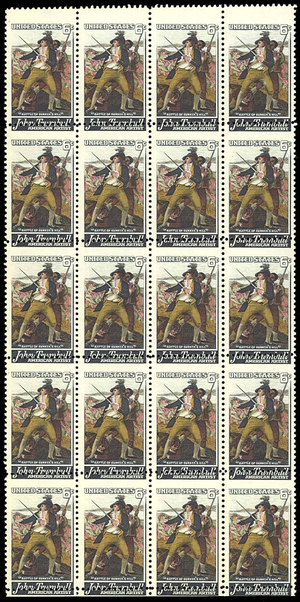 1361, MNH MISPERFORATED ERROR BLOCK OF 20 STAMPS John Trumbull - Stuart Katz