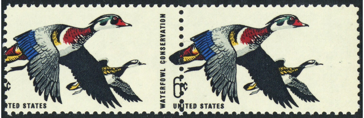 1362, Perf Shift Freak Error Pair Mint NH 6¢ Ducks * Stuart Katz