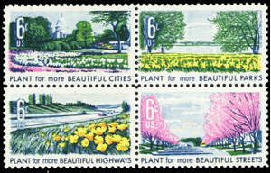 1368a, Mint NH 6¢ Green Color Shifted Left Freak Error Block * Stuart Katz