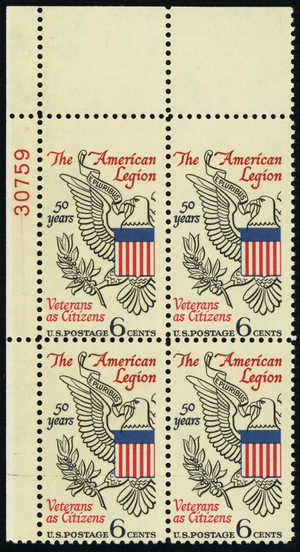 1369, MNH 6¢ Big & Small Stamps Error Plate Block of Four Stamps - Stuart Katz