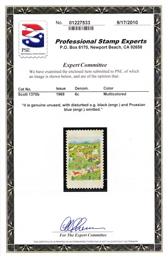 1370b, Mint NH 6¢ Black Color Omitted Error PSE Certificate * Stuart Katz