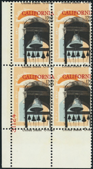 1373, Mint NH Outrageous Color Shift Error Plate Block California - Stuart Katz