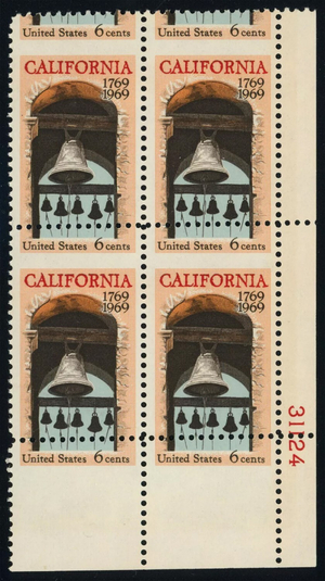 1373, MNH 6¢ California - Scarce Misperfed Error Plate Block * Stuart Katz