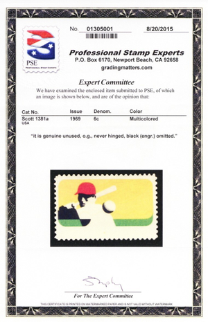 1381a, Mint XF NH 6¢ Black Color Omitted Error With PSE Cert * Stuart Katz