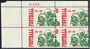 1382, MNH 6¢ Dramatic Perf Shift Freak Error Football Plate Block - Stuart Katz