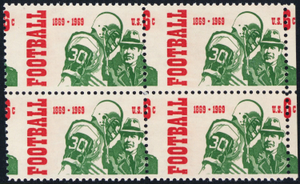 1382, MNH Football 6¢ Perfs Shifted Freaky Error Block * Stuart Katz