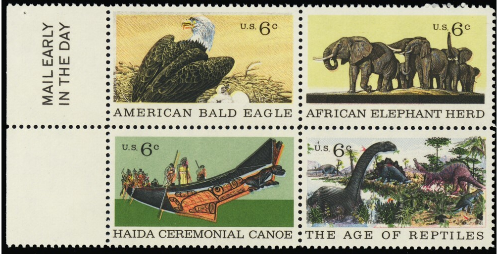 1390a, Mint NH 6¢ Color Shift Error Block - Stuart Katz