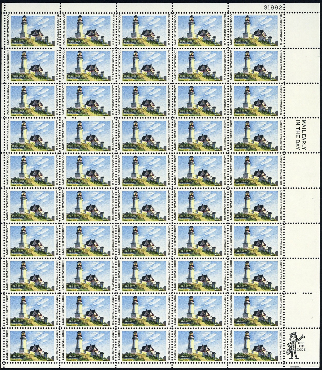 1391, MNH 6¢ Colors Shifted Down Freak Error Sheet of 50 Stamps - Stuart Katz