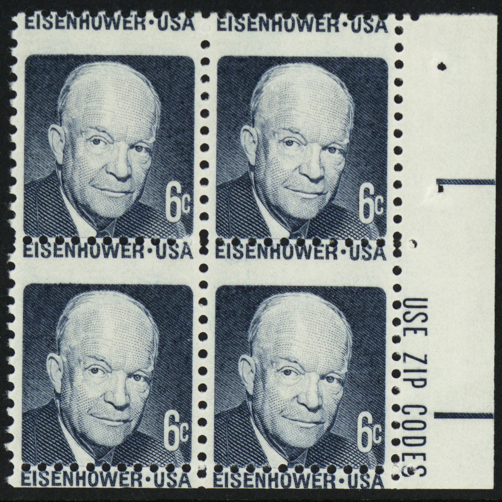 1393, Misperf Shift Freak Error Zip Block of Four Mint NH 6¢ - Stuart Katz