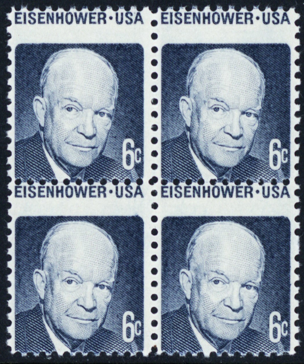 1393, MNH 6¢ IKE Perfs Shifted Freaky Error Block * Stuart Katz