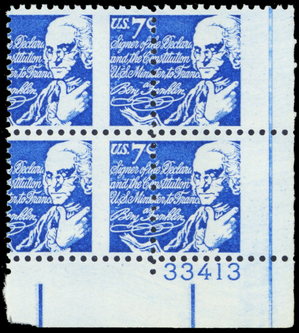 1393D, Mint NH 7¢ Large Misperforation Error Plate Block of Stamps - Stuart Katz