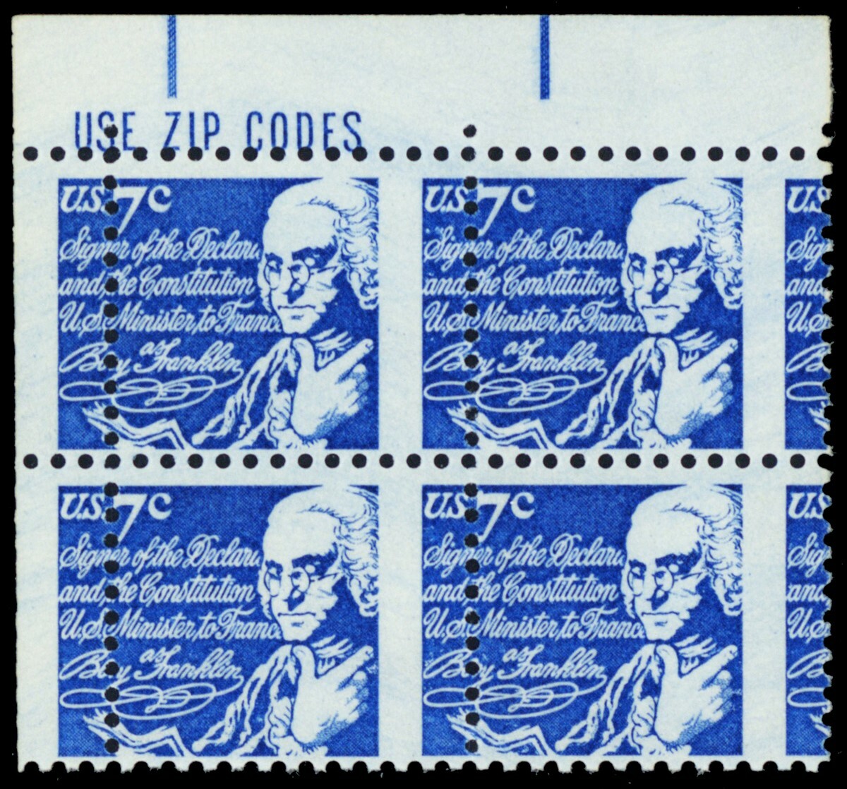 1393D, Mint NH 7¢ Remarkable Misperfed Zip Block Error - Stuart Katz