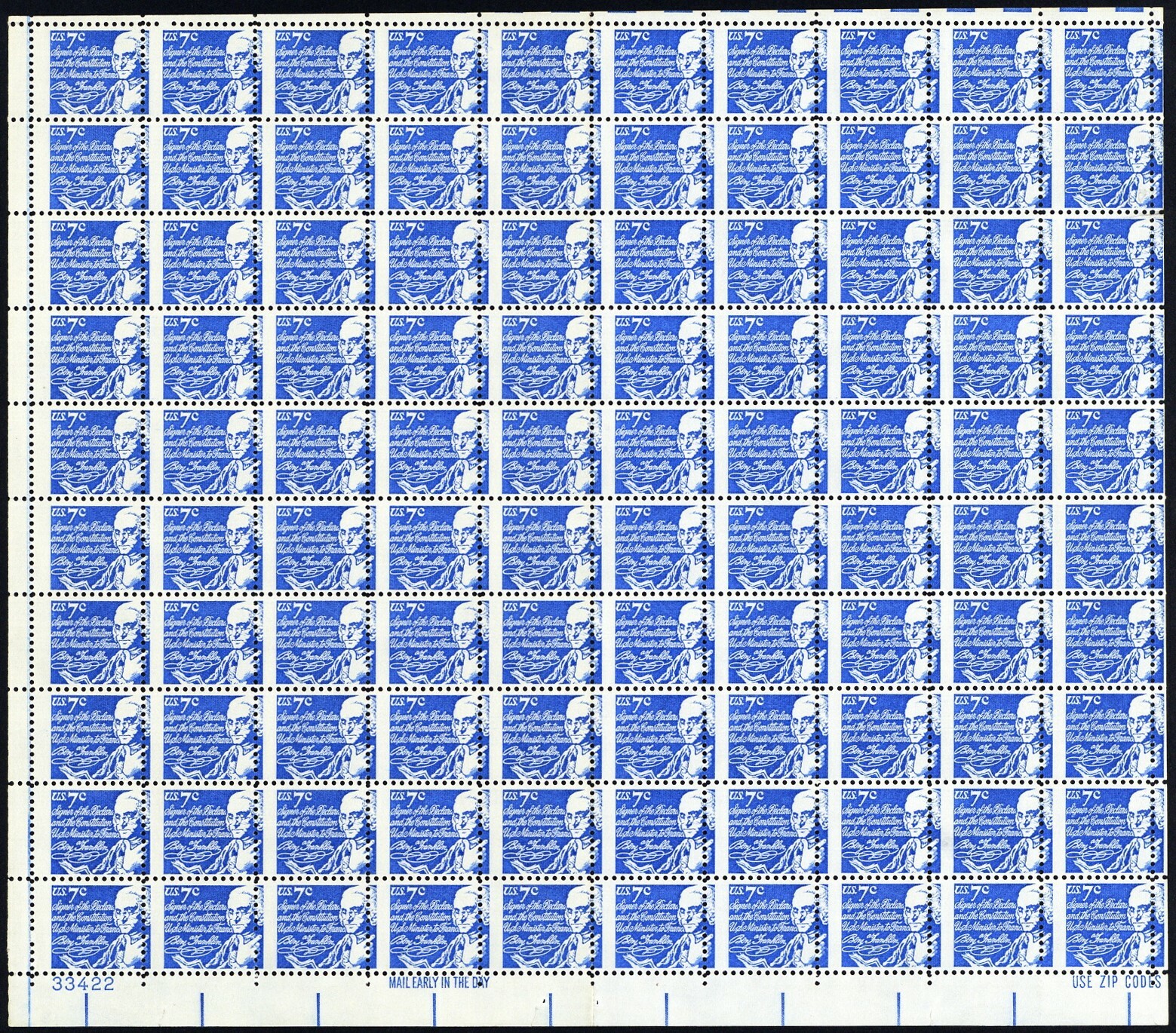 1393D, MNH 7¢ Misperf Freak Error Sheet of 100 Stamps - Stuart Katz