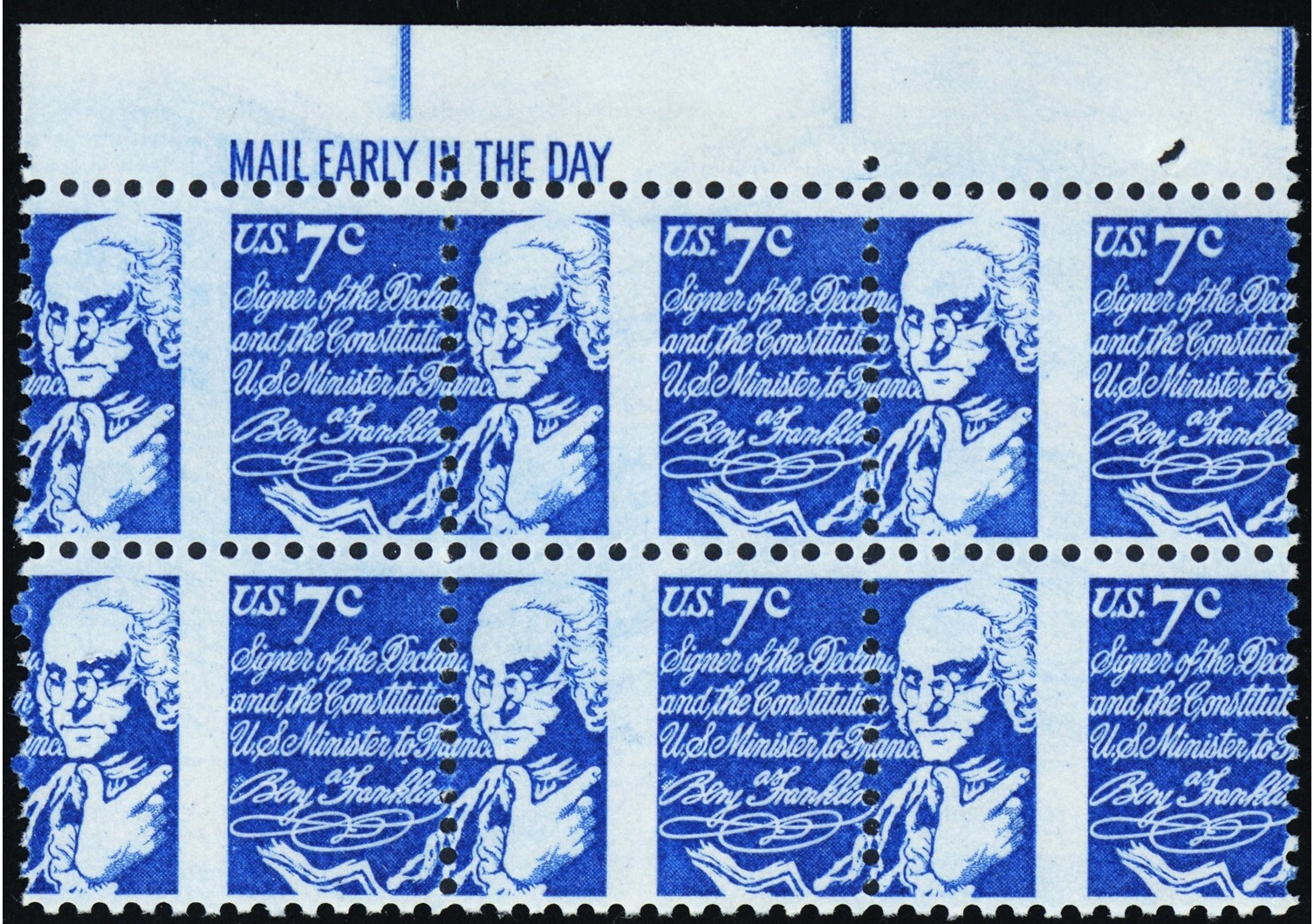 1393D, MNH 7¢ - Perfs Shifted Freaky Error Mail Early Block * Stuart Katz