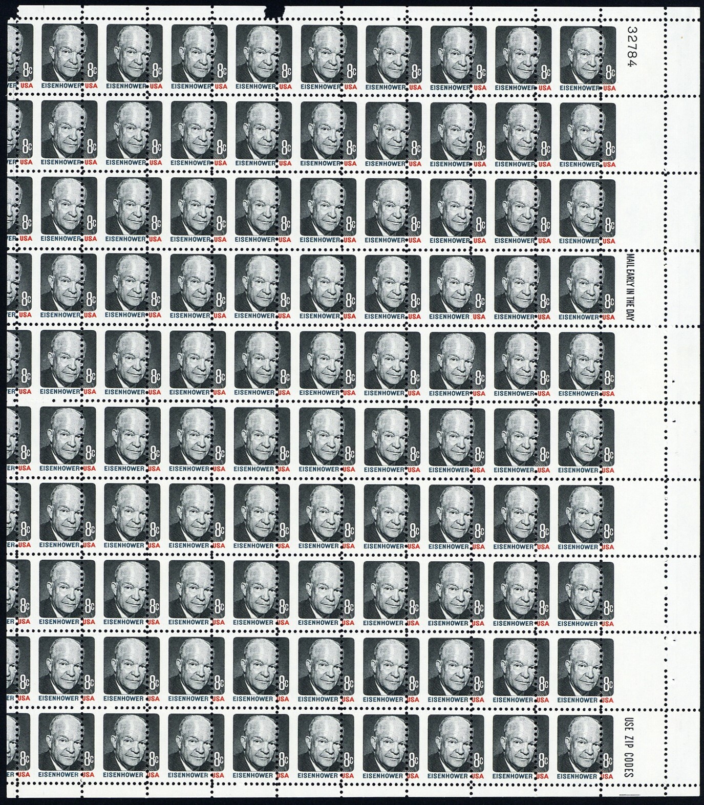 1394, MNH 8¢ Massive Misperfed Sheet of 100 Stamps - Freak Error * Stuart Katz