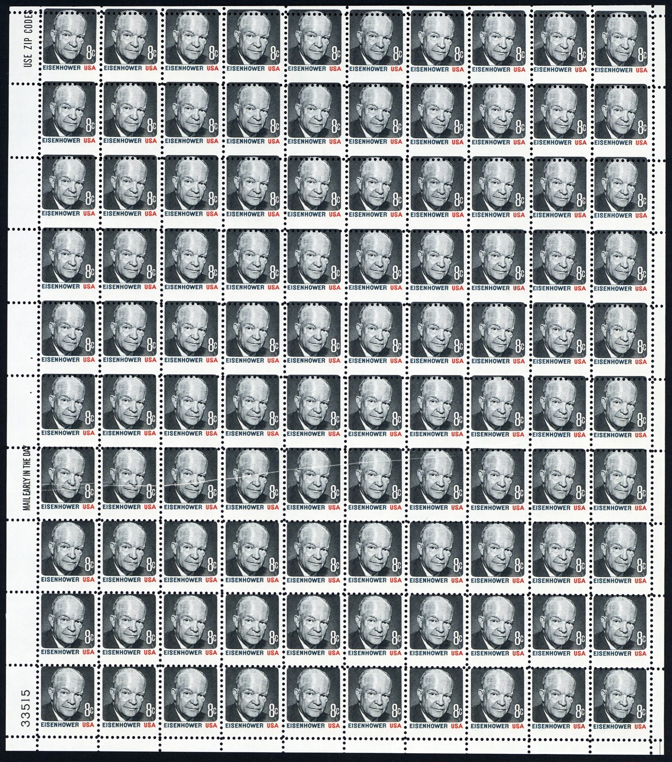 1394, MNH 8¢ Pre Print Paper Fold & Misperf Error Sheet of 100 * Stuart Katz