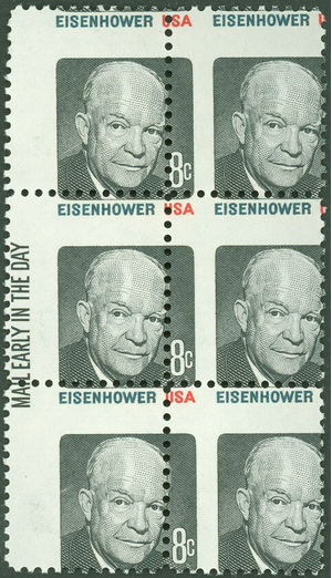 1394, Red Missing on 2 Stamps - Two Way Misperforated Error Zip Block of Six