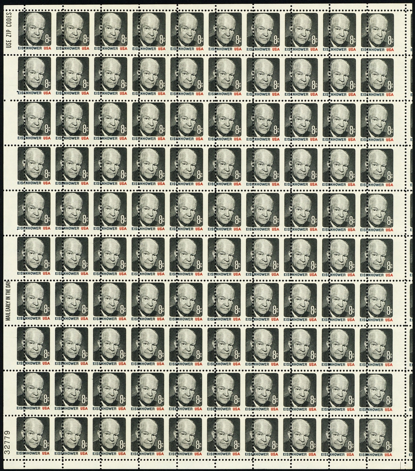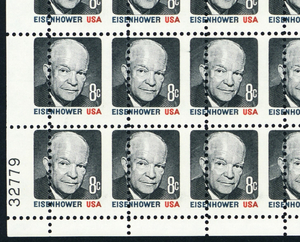 1394, Vertical Perf Shift ERROR Complete Sheet of 100 8¢ IKE - Stuart Katz