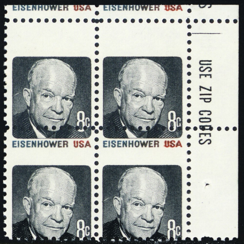 1394d, Mint VF NH 8¢ Red & Blue Colors Omitted Error Zip Block * Stuart Katz