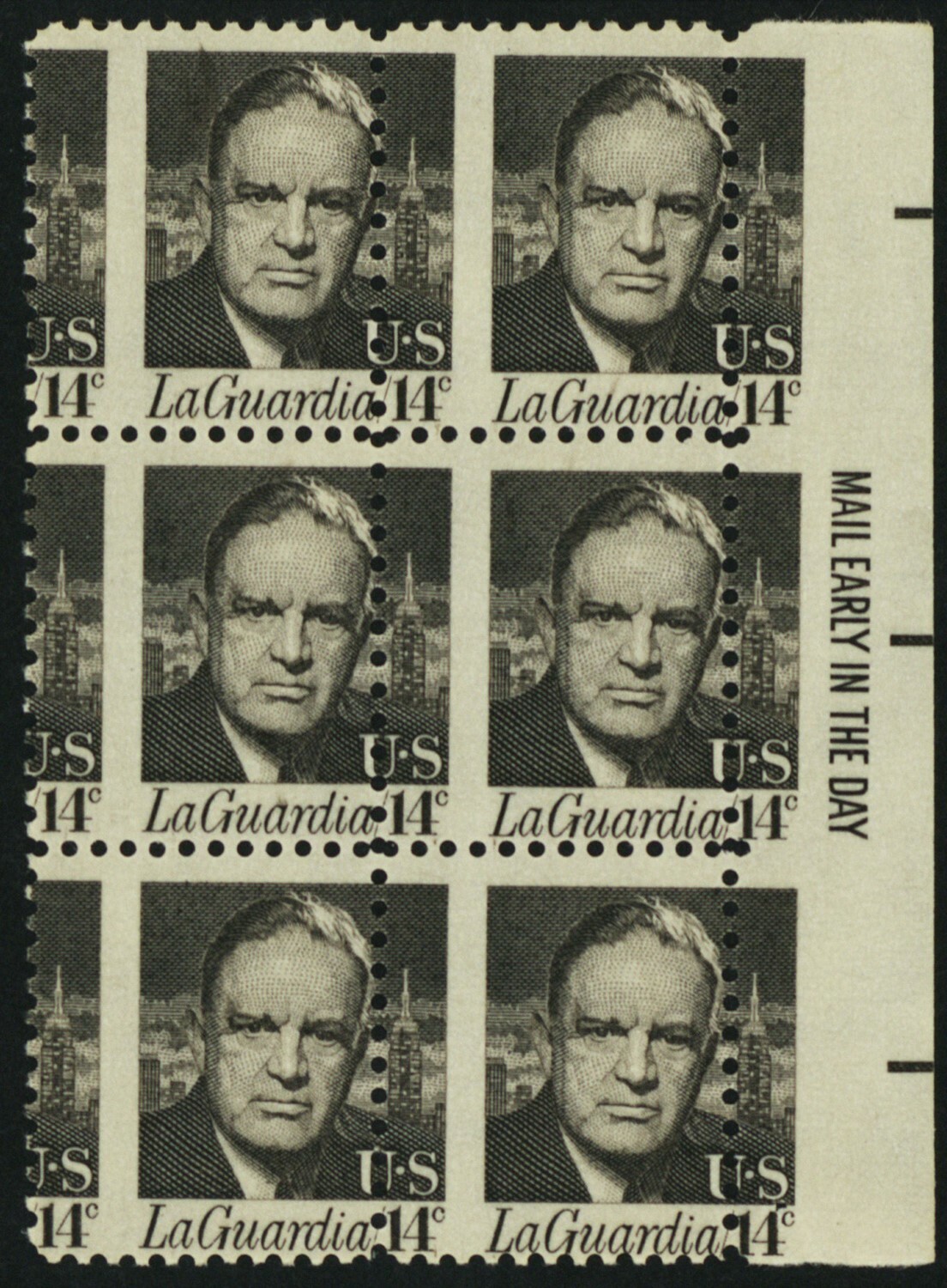 1397, Misperf Shift Freak Error Mail Early Block of Six Mint NH 14¢ Stuart Katz