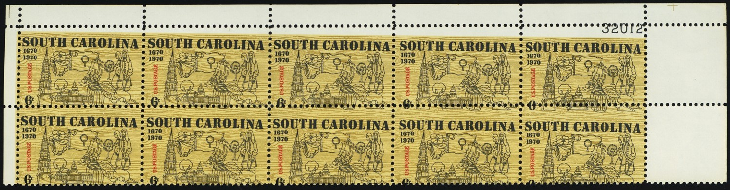 1407, Mint NH 6¢ Misperfed Error P.B. of 10 Stamps - S. Carolina * Stuart Katz