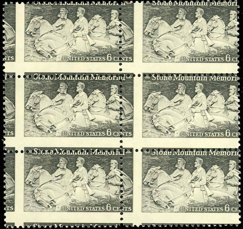 1408, MISPERFED ERROR BLOCK OF SIX - 6¢ STONE MOUNTAIN
