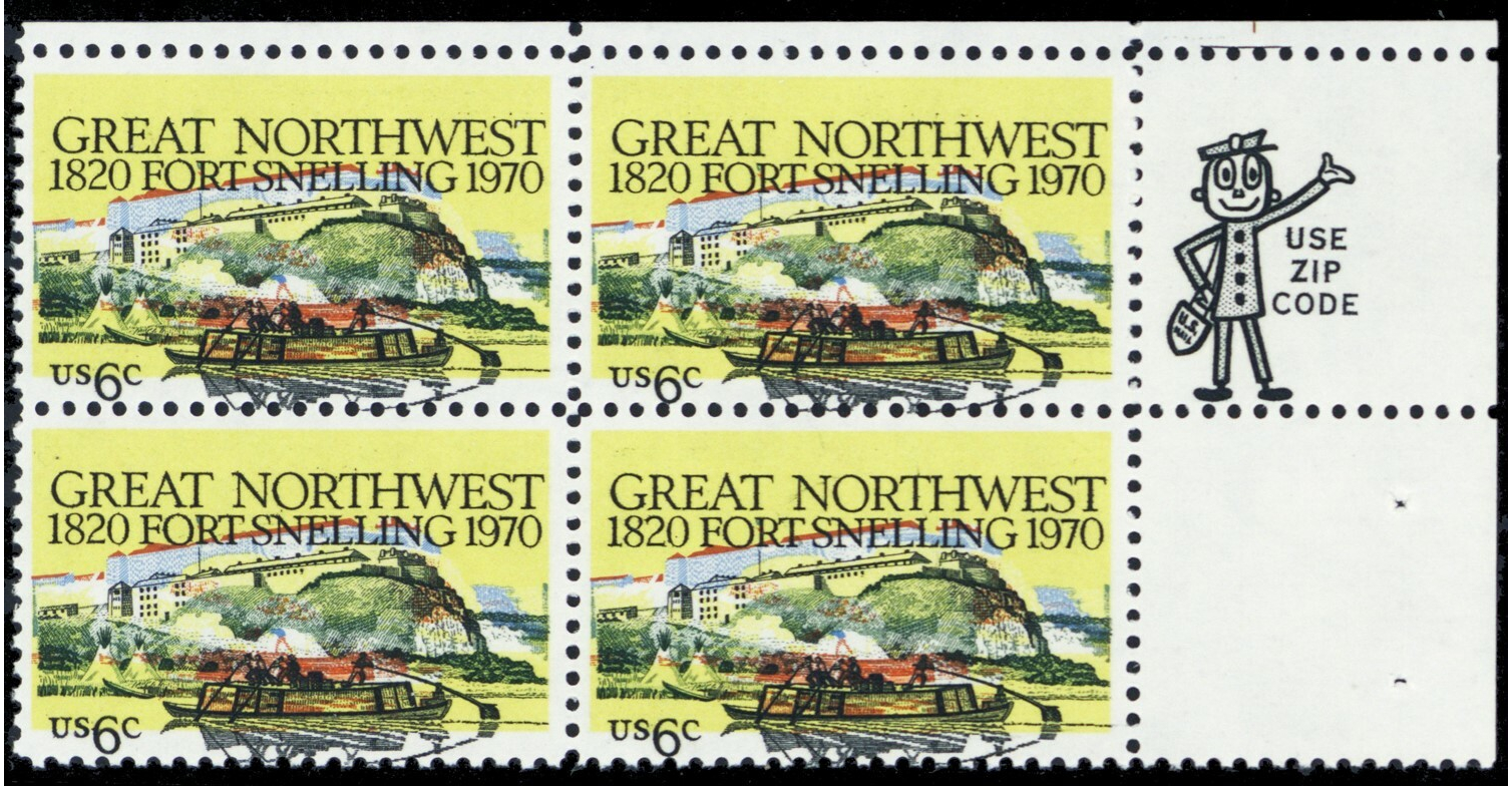 1409, Mint NH 6¢ Colors Shifted Down Freak Error Zip Block * Stuart Katz
