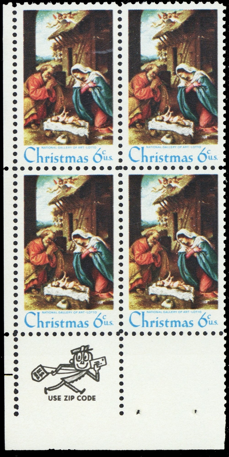 1414, MNH 6¢ Color Shift Error Zip Block of Four Stamps - Stuart Katz