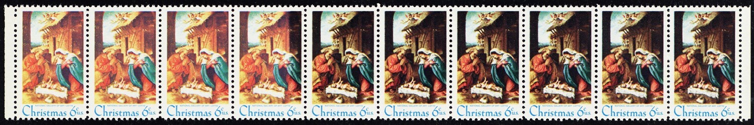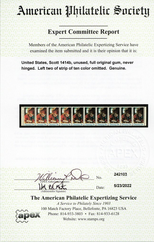 1414b, MNH 6¢ Black Color Omitted In Transitional Strip APS Cert - Stuart Katz
