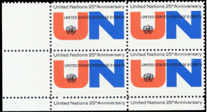 1419, Mint NH Amazing Color Shift Error 6¢ UN Block WoW - Stuart Katz