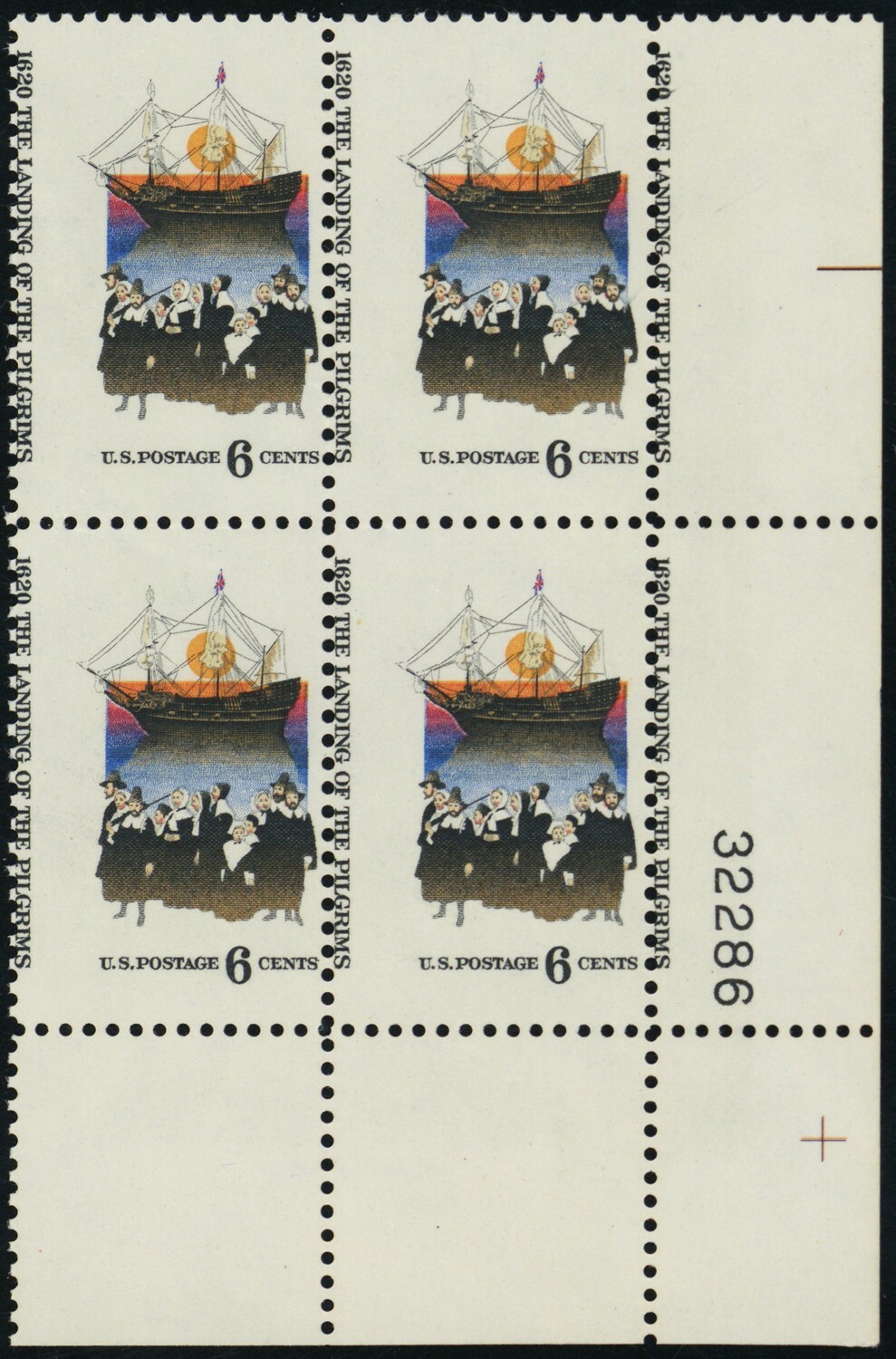1420, MNH 6¢ HUGE Misperfed Error Plate Block of Four - Pilgrims - Stuart Katz