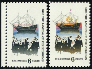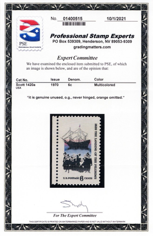 1420a, Mint VF NH 6¢ Pilgrim Orange & Yellow Omitted Error PSE Cert Stuart Katz