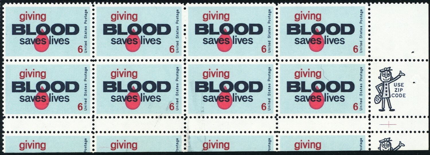1425, Mint NH 6¢ Large Gutter Snipe Error Block of 8 Stamps - Stuart Katz