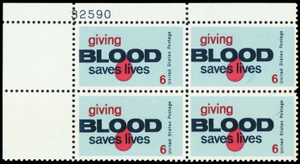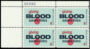 1425, MNH 6¢ RARE Blue Color Shift Error Plate Block - Stuart Katz