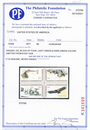 Due to the high cost of obtaining certificates we will only refund the cost of the stamp and not the cost of the certificate for stamps that sell for less than $250 that come back with a negative certificate. Stamps that sell for above $250 will receive a full refund for both the price of the stamp and cost of the certificate if it should come back not as described. For U.S. stamps only certificates from either APS, PSE or from the Philatelic Foundation are accepted, however "graded" certificates or "encased" items are not accepted.