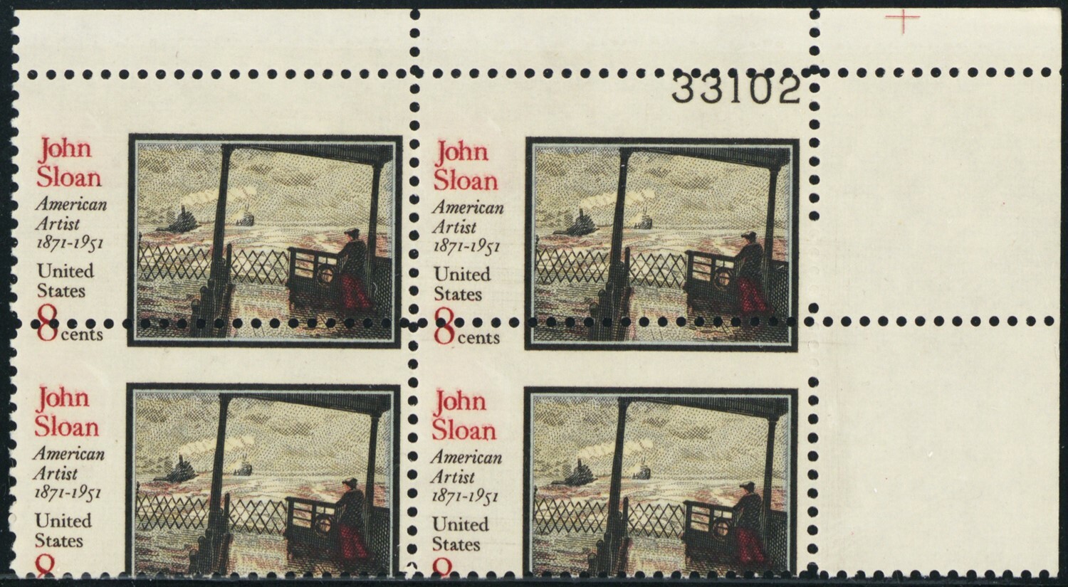 1433, Mint NH 8¢ Large Misperf Error Plate Block PL# Captured - Stuart Katz