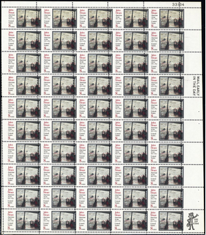 1433, Misperforated ERROR Sheet of 50 8¢ John Sloan Stamps - Stuart Katz